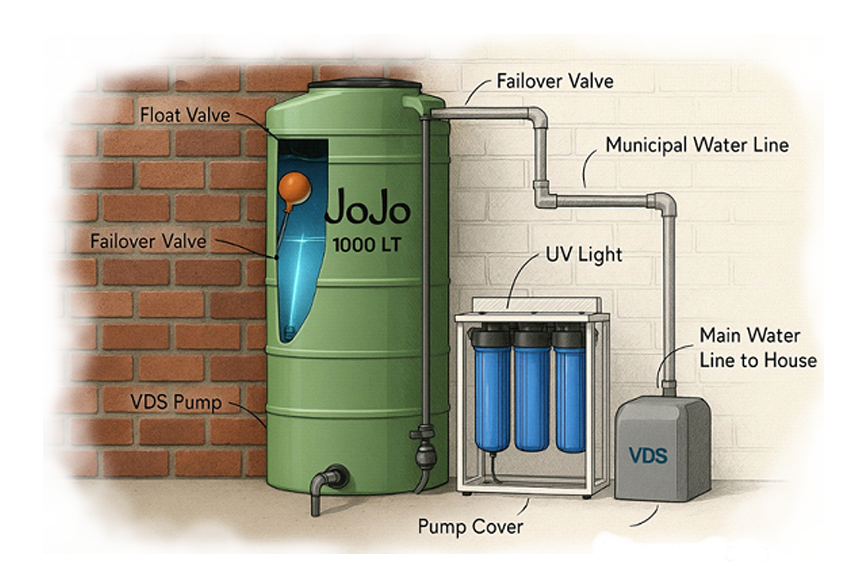In South Africa, the average household uses between 600 and 1,000 litres of water per day. That means even a short disruption in municipal supply can leave your family without this essential resource. At Sun Fusion, we provide complete municipal water backup systems — from 1,000L to 10,000L — custom-fitted for residential homes.